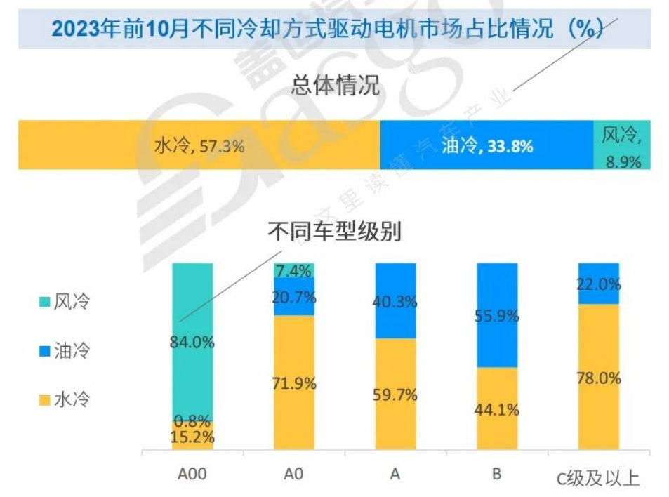 蓋世汽車(chē)研究院高級(jí)分析師在大會(huì)上針對(duì)電驅(qū)動(dòng)產(chǎn)業(yè)趨勢(shì)及新技術(shù)進(jìn)行了詳盡分析,指出,隨著新能源汽車(chē)在更廣泛的應(yīng)用場(chǎng)景中滲透,對(duì)于驅(qū)動(dòng)電機(jī)的峰值功率、運(yùn)行效率、響應(yīng)速度和振動(dòng)噪音等多項(xiàng)性能提出了更高的要求,“新一代電驅(qū)動(dòng)系統(tǒng)基本上已切換至油冷電機(jī)方案,相較水冷,油冷因具備絕緣性好、冷卻效果佳等特點(diǎn),能夠兼顧低速大轉(zhuǎn)矩下的定子繞組溫升和高速大功率下的磁鋼溫升,可改善電機(jī)效率。”據(jù)蓋世汽車(chē)研究院數(shù)據(jù),截止今年10月,乘用車(chē)領(lǐng)域,油冷電機(jī)市場(chǎng)占有率已達(dá)33.8%,而B(niǎo)級(jí)車(chē)油冷電機(jī)應(yīng)用已達(dá)到55.9%。同時(shí),在商用車(chē)領(lǐng)域,低速重載、倒車(chē)等工況中傳動(dòng)機(jī)構(gòu)齒輪攪油潤(rùn)滑冷卻效率低導(dǎo)致動(dòng)力傳動(dòng)系統(tǒng)失效風(fēng)險(xiǎn)的凸顯,也進(jìn)一步強(qiáng)化了電子油泵在新能源商用車(chē)中的重要作用和關(guān)鍵零部件地位。